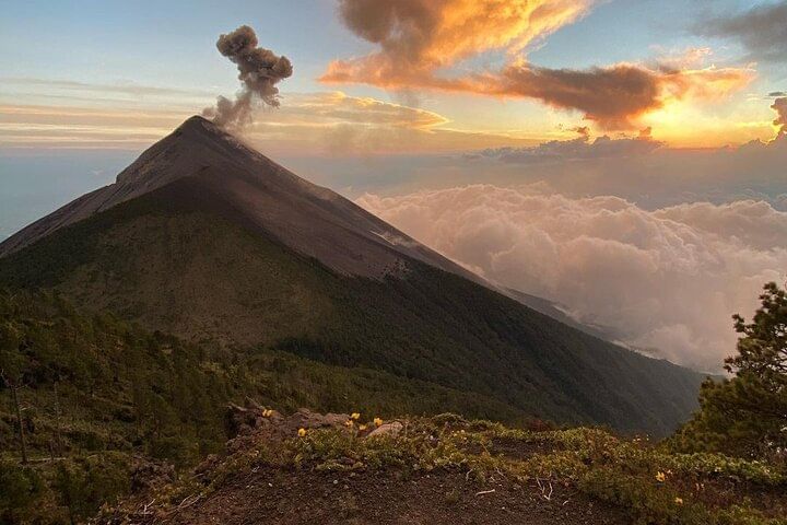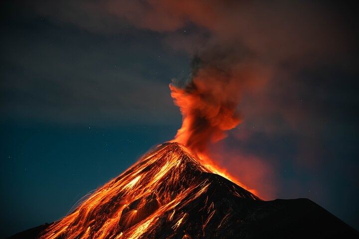 Join us on an unforgettable journey up Acatenango Volcano, the third-largest in Guatemala! Day 1 entails an exhilarating hike covering 80% of the volcano's terrain, lasting around 6 hours. Witness the awe-inspiring eruptions of Fuego Volcano as you warm up by the campfire at base camp. At night, opt for an optional tour to get up close to Fuego's eruptions (additional cost applies).