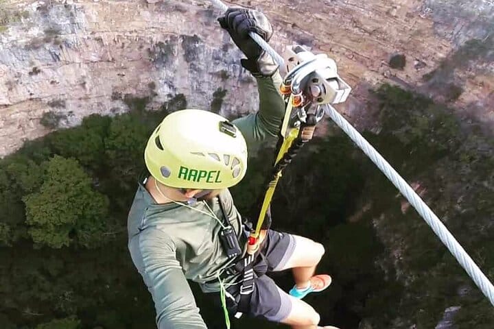 Rappel and Zip line at Sima de las Cotorras - Aguacero Waterfall